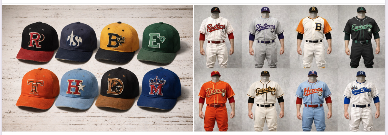 We've gotten a ton of great feedback about bringing back the 1961 Continental League cards! This set is now live on the website, we'll do our best to keep it in stock. And--check out these sweet '61 Continental League uniforms and ball cap concepts created with AI by PLAAY Gamer John Alexander!