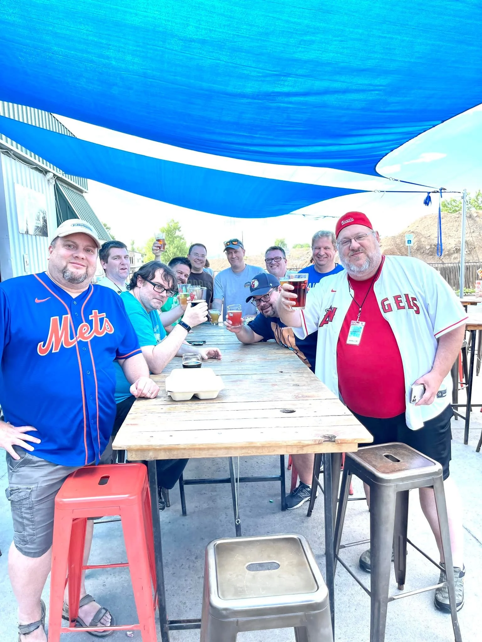 After a full day of sports games, time to hoist a few at “Livin’ The Dream,” a local brew-pub! From left: James Cast, Brien Aronov, Kevin Sieg, Travis Jansen, Al Wilson, Harvey Couch, S. T. Patrick, Cooper Gilbert, Paul Salzgeber, Bob Hansen. (photo courtesy of Al Wilson.)