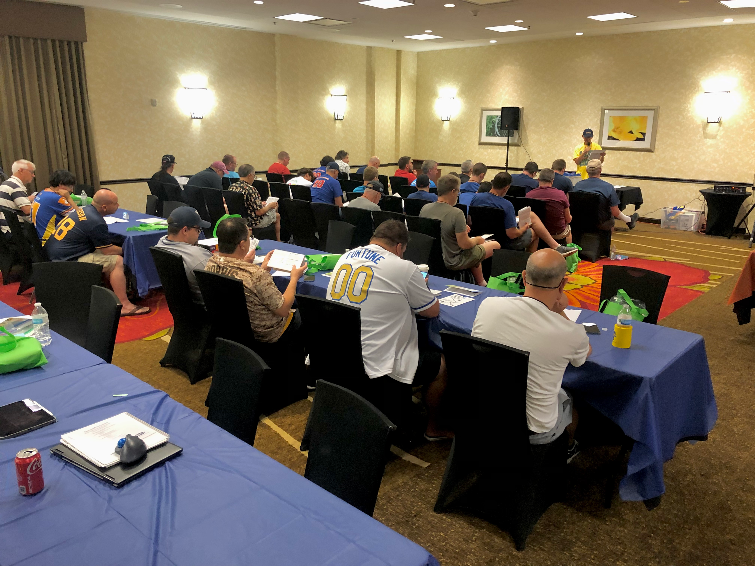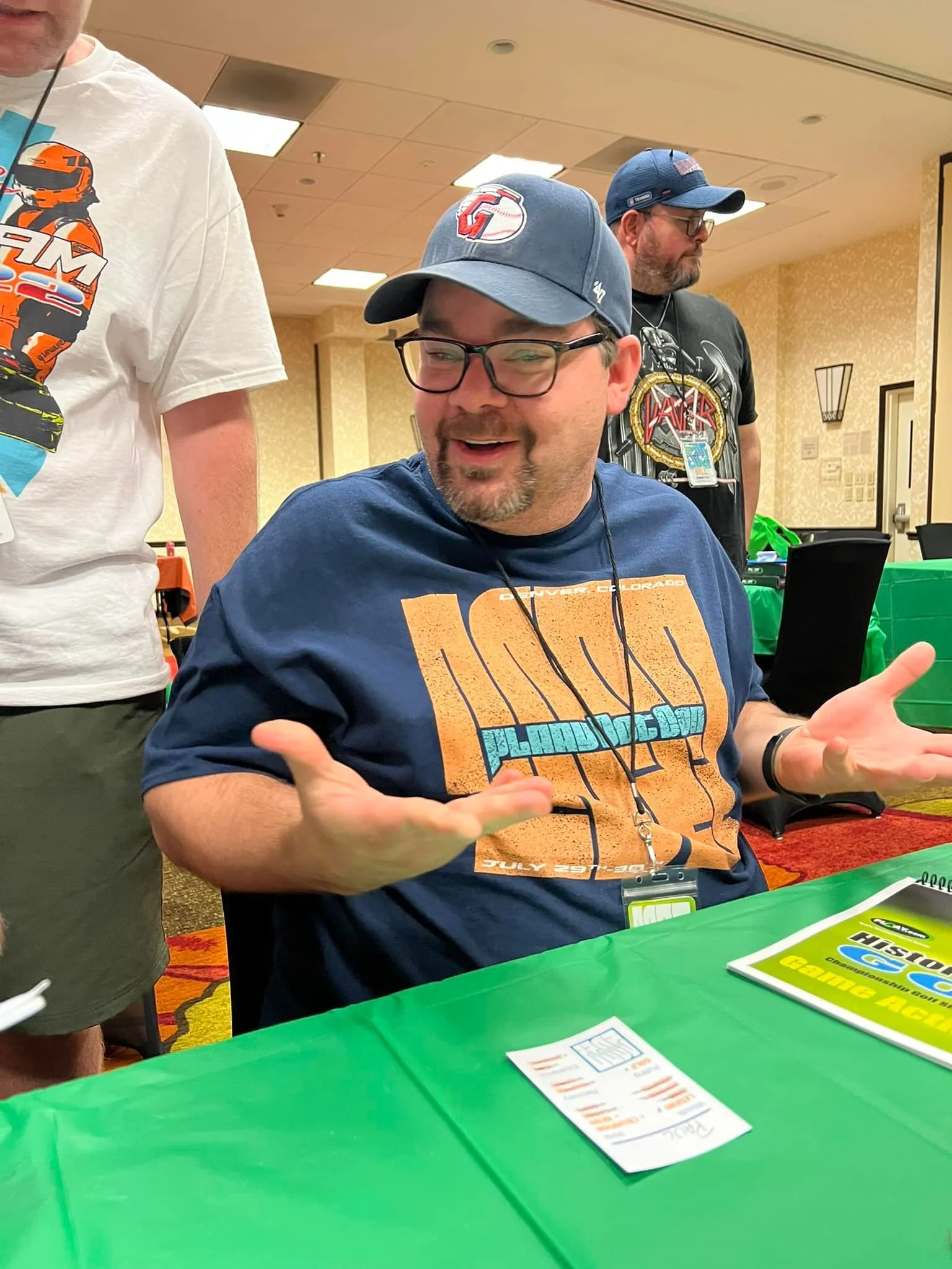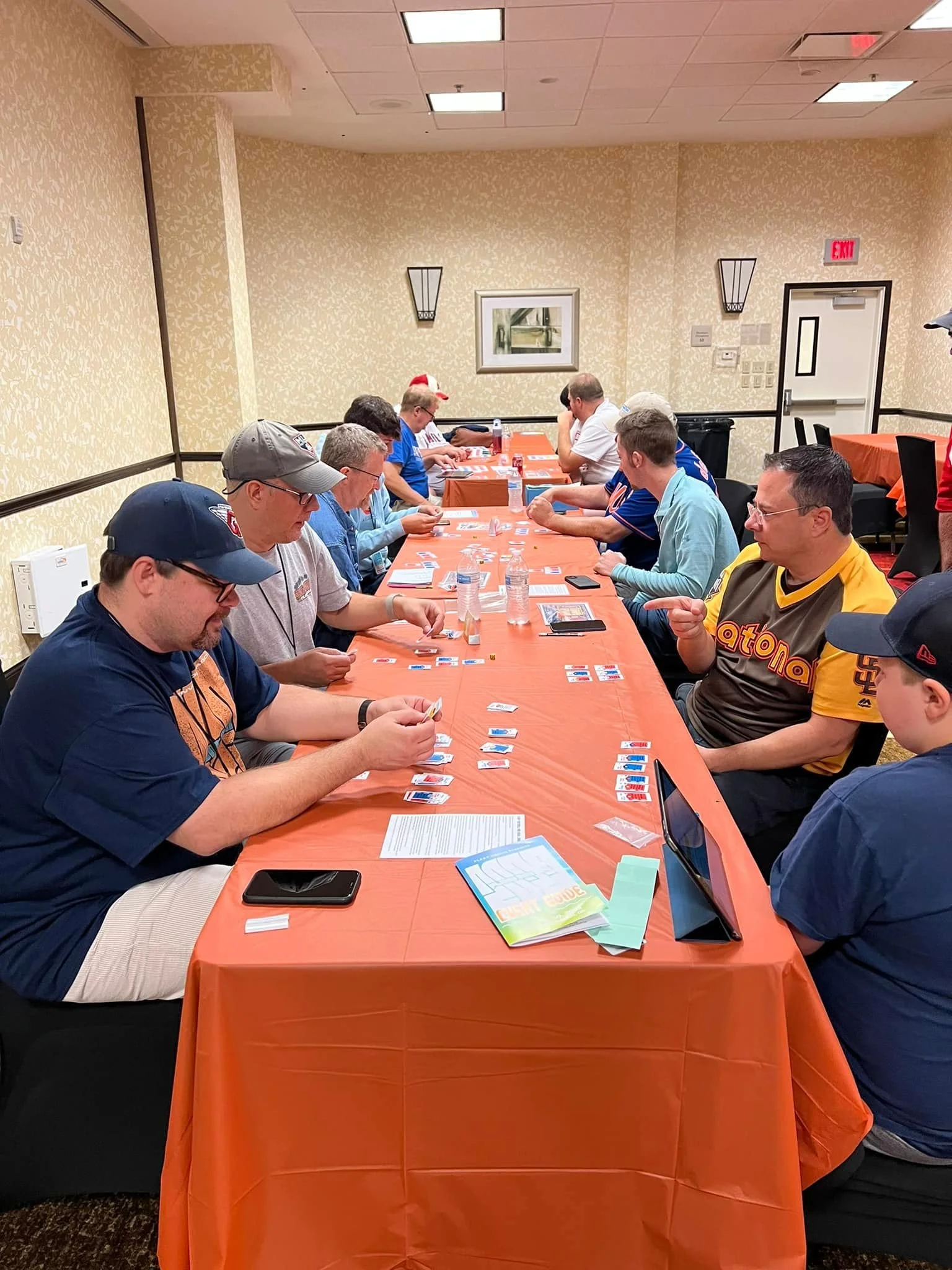 Going over the nuances of the new “express” version of History Maker Baseball, prior to this year’s Time Machine Tournament. It was one of the FEW times there was quiet in the room, haha!